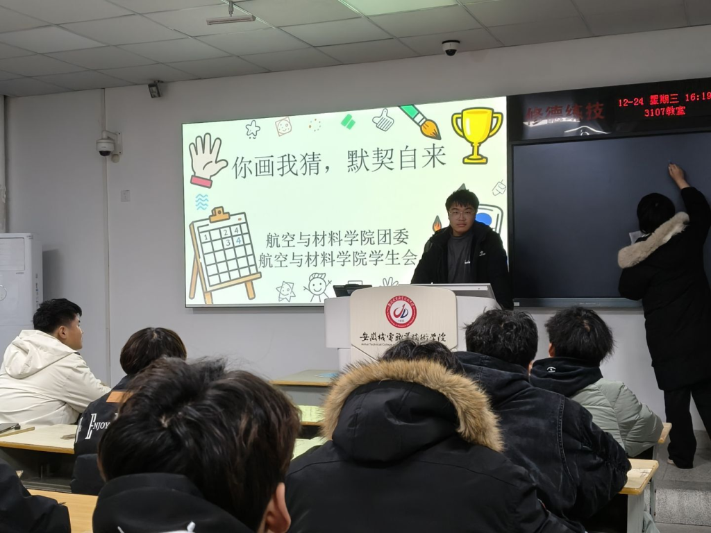 为丰富学生课余生活,提高学生团队协作能力,2025年12月24日下午,航空与材料学院在3107教室举办了“你画我猜,默契自来”趣味比赛活动。活动一经推出便得到全院各年级学生的热烈响应,众多学子踊跃报名参与,现场氛围十分活跃。