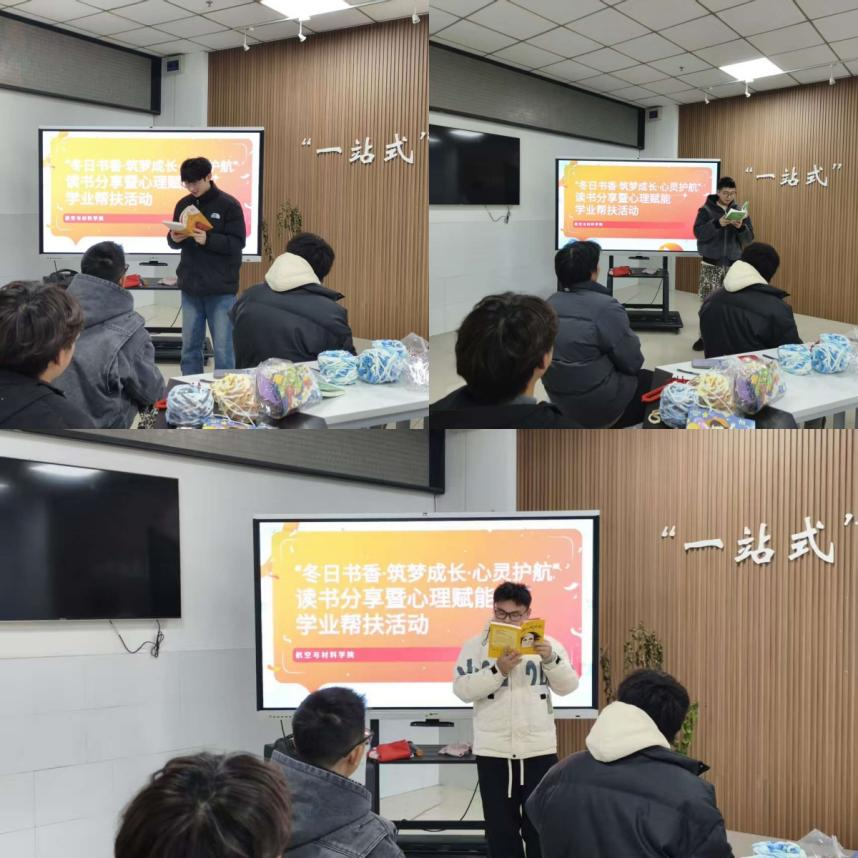 学院聚焦家庭经济困难学生的学业提升与综合素质培养,联合二级学院心理辅导站精心策划了“冬日书香·筑梦成长·心灵护航”主题活动。活动采用“读书分享+一对一帮扶”模式,实现思想引领与学业帮扶的有机结合。活动前期,学院遴选成绩优异、乐于奉献的学生志愿者组建了帮扶队伍。读书分享环节,同学们围绕励志故事,结合自身经历畅谈感悟,坦诚交流成长困惑。志愿者们则有针对性进行答疑解惑,以朋辈榜样力量激发同学们的学习动力。
